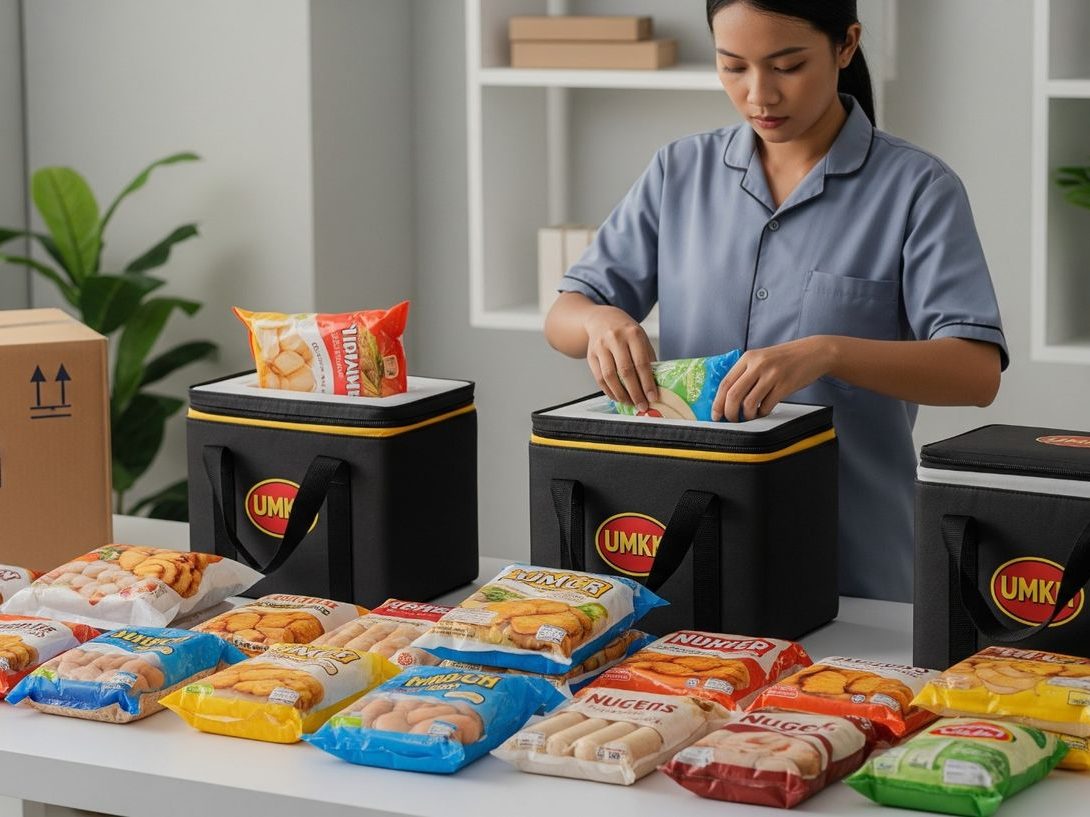 Ini adalah investasi wajib bagi UMKM frozen food. Thermal bag atau cooler box berfungsi sebagai isolator suhu yang menjaga produk tetap beku selama perjalanan. Pilih thermal bag berkualitas tinggi dengan lapisan insulasi tebal. Sebagai contoh, untuk pengiriman skala kecil atau personal, thermal bag ukuran medium sudah cukup. Sementara itu, untuk volume yang lebih besar, cooler box yang kokoh menjadi pilihan ideal.