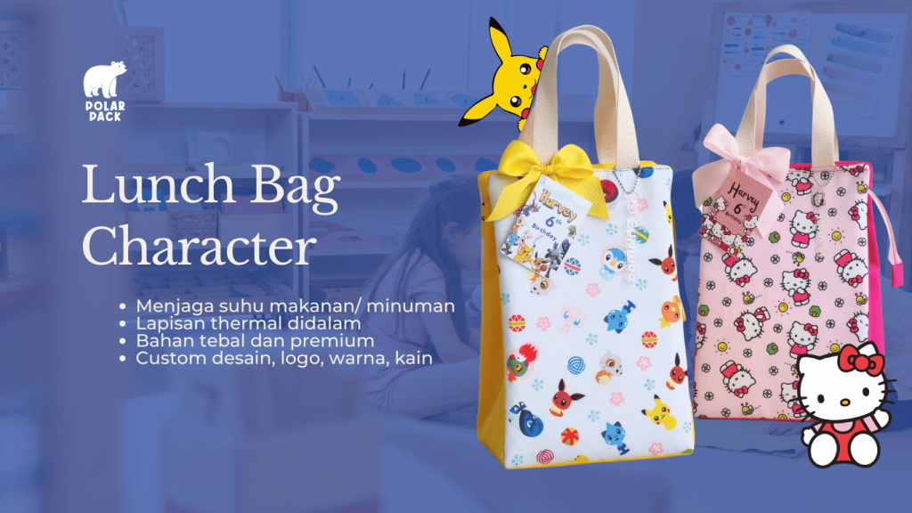 Kami memahami bahwa setiap anak memiliki karakter favoritnya sendiri. Maka dari itu, semua model lunch bag character ini bisa Anda kustomisasi! Anda dapat memesan karakter lain sesuai keinginan si kecil. Lunch bag ini tidak hanya lucu, tetapi juga fungsional dengan kain tebal premium yang menjaga suhu makanan tetap optimal.